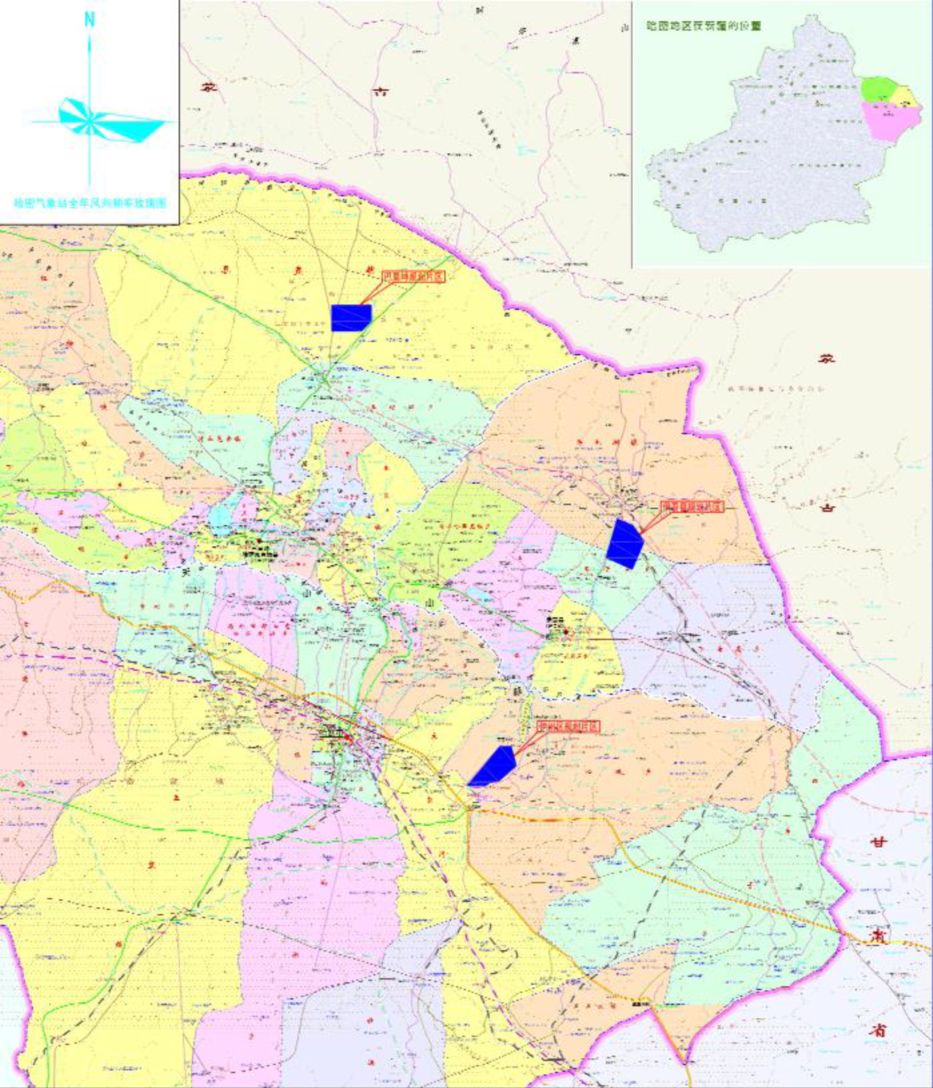 1、概况:哈密市位于新疆维吾尔自治区最东端,地跨天山南北。南北距离约404公里,下辖伊州区、伊吾县、巴里坤哈萨克自治县。三地的平均年DNI值分别为1980kWh/㎡、2050kWh/㎡,2000kWh/㎡。