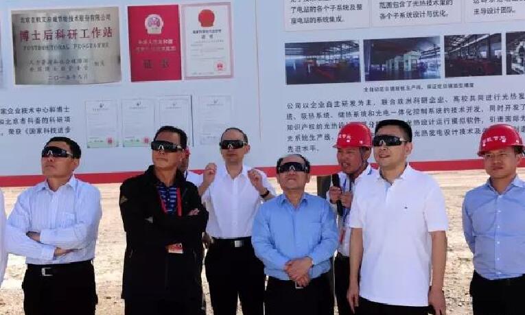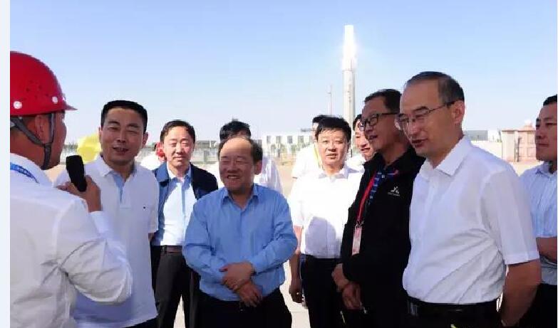 图:宁吉喆副主任等领导观看首航节能敦煌一期10MW项目运行中的吸热器