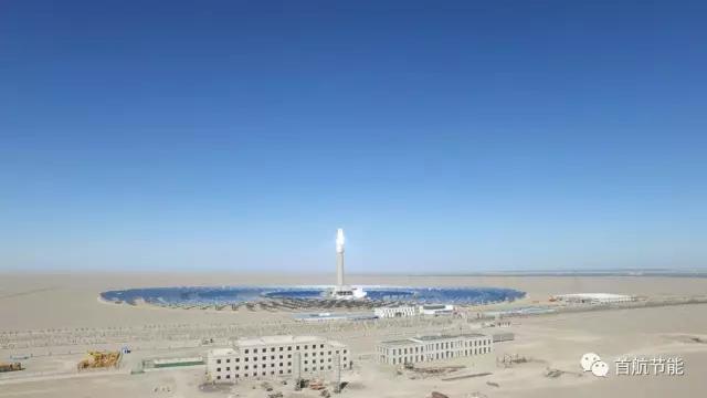 首,第一也;航,航行也。 有了敦煌的盛大和首航人首次航行的精神,才让光热技术有了点亮丝路的机会。2013年首航节能开始在敦煌进行太阳能资源监测,并根据实测的阳光资源数据,开展首航敦煌光热电站设计和建设。2016年12月,敦煌光电园区138米高塔第一次被点亮,标志着亚洲第一座能24小时连续发电的塔式熔盐光热电站正式并网成功。