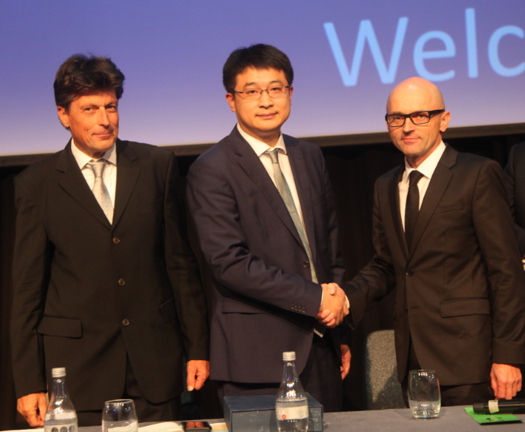 9月29日,2017年度Solar PACES大会在智利首都圣地亚哥顺利闭幕。经SolarPACES执委会全体各成员国代表的投票,我国常州龙腾光热科技股份有限公司(下文简称龙腾光热)与德国瓦克化学公司有限合作的“导热硅油在严寒地区太阳能槽式集热器的应用技术” 荣获“2017SolarPACES 技术创新奖”。龙腾光热战略规划总监窦怀新与瓦克化学高级研发副总裁Fridolin Stary博士,新业务研发总监Erich Scaffer一起接受了SolarPACES大会执委会副主席王志峰博士授予的奖项。