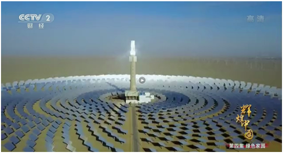 图:纪录片《绿色家园》栏目中展现的首航节能敦煌10MW光热电站镜头