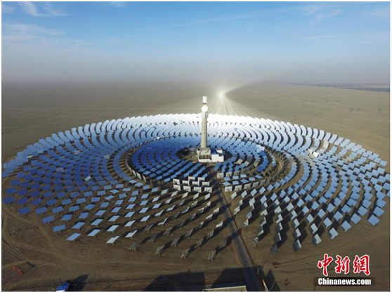 图:2017年12月9日的首航节能敦煌10MW太阳能热电站外景(中新社记者 杨艳敏 摄)