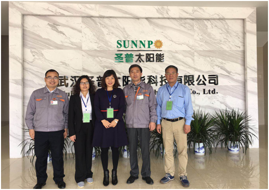 图:国家光热联盟秘书处一行走访圣普太阳能,同行的还有康达新能源副总经理周福云(右)