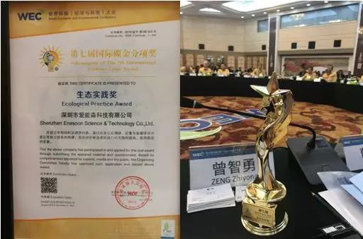 鉴于爱能森在推动经济与环境和谐、绿色低碳、可持续发展的“绿色征程”中,以低碳理念履行社会价值,世界环保大会授予深圳市爱能森科技有限公司第七届国际碳金奖“生态实践奖”。爱能森首席技术官曾智勇作为特邀贵宾进行大会发言,并接受颁奖。