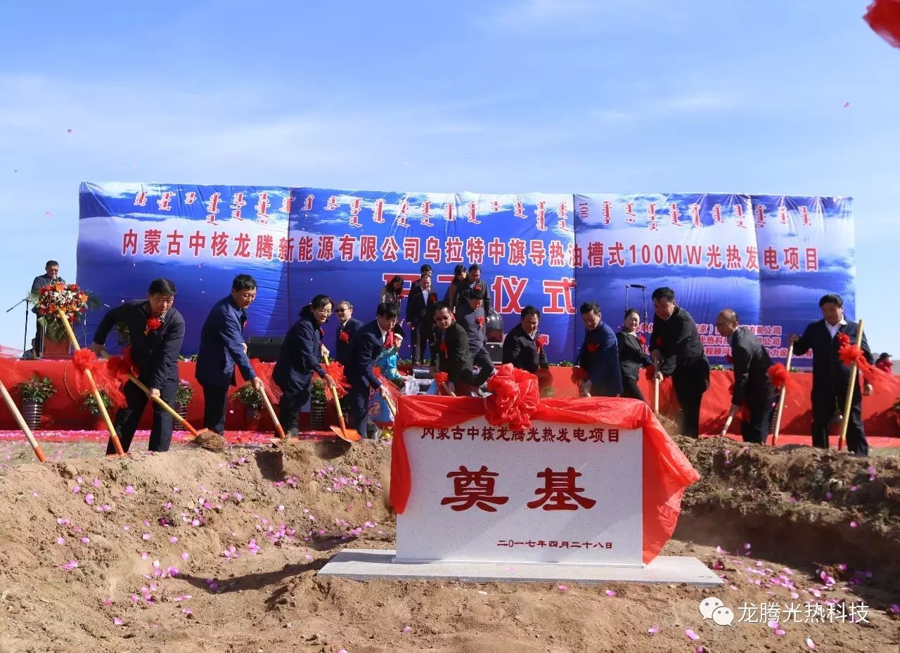 龙腾光热乌拉特中旗导热油槽式10万千瓦光热发电项目已于2017年4月正式开工,目前已完成结构安装,场平工作已完成95%左右,目前正在稳步建设中。