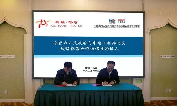 3月23日,中国电力工程顾问集团西北电力设计院有限公司(下文简称中电工程西北院)与哈密市人民政府举行战略框架合作协议签约仪式。中电工程西北院副总经理田宏与哈密市人民政府副市长张红光签订了合作协议。