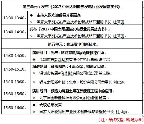组织编写的《2017中国太阳能热发电行业发展蓝皮书》。欢迎相关各界同仁莅临展会和论坛,论坛议程见下: