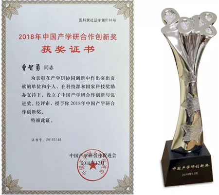 1 月6日,以“加强产学研用深度融合 促进民营经济创新发展”为主题的第十二届中国产学研合作创新大会在北京举行。在中国产学研合作创新与促进奖年度评选中,按照《国家科学技术奖励条例》和《中国产学研合作创新与促进奖评审办法》,通过推荐、申报、专家评审、公示,经中国产学研合作创新与促进奖奖励办公室批准,深圳市爱能森科技有限公司(简称爱能森)首席科学家曾智勇被授予 2018 年中国产学研合作创新奖。