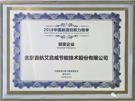 1月12日,2018中国能源企业创新力榜单发布会暨能源创新高峰论坛在北京召开。会上,中国能源创新力榜单组委会和能见APP共同发布了2018中国能源创新力榜单,北京首航艾启威节能技术股份有限公司入选了2018中国能源创新力——新能源制造类榜单。中国工程院院士彭苏萍为其颁奖。
