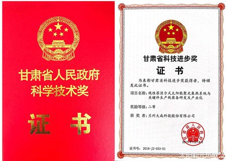 兰州大成菲涅耳聚光集热技术荣获甘肃省科技进步二等奖