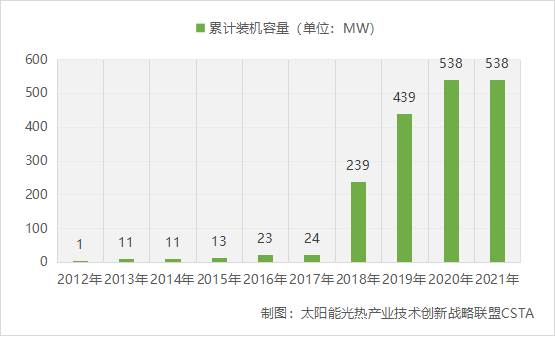 图:2021年底我国太阳能热发电累计装机容量