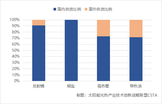 图:太阳能热发电示范项目关键部件材料国内外供货比例情况