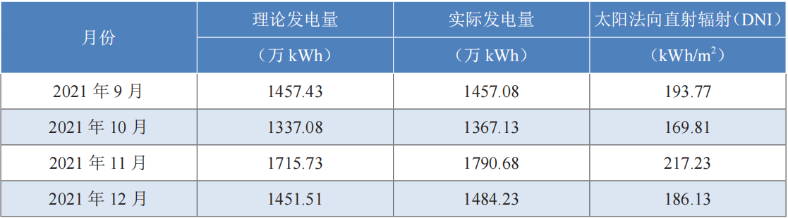 表:青海中控德令哈50MW光热电站2021年9~12月发电量数据