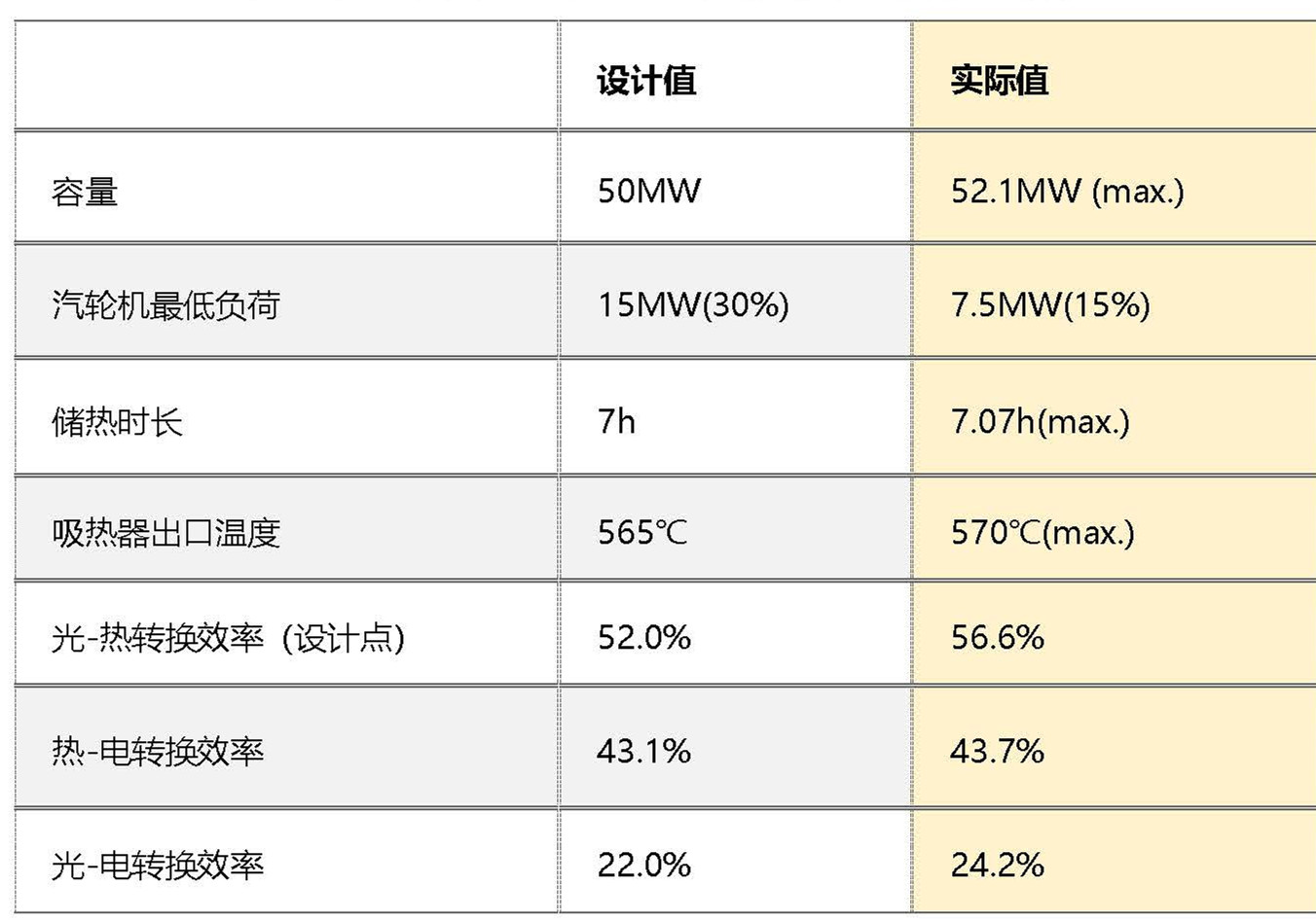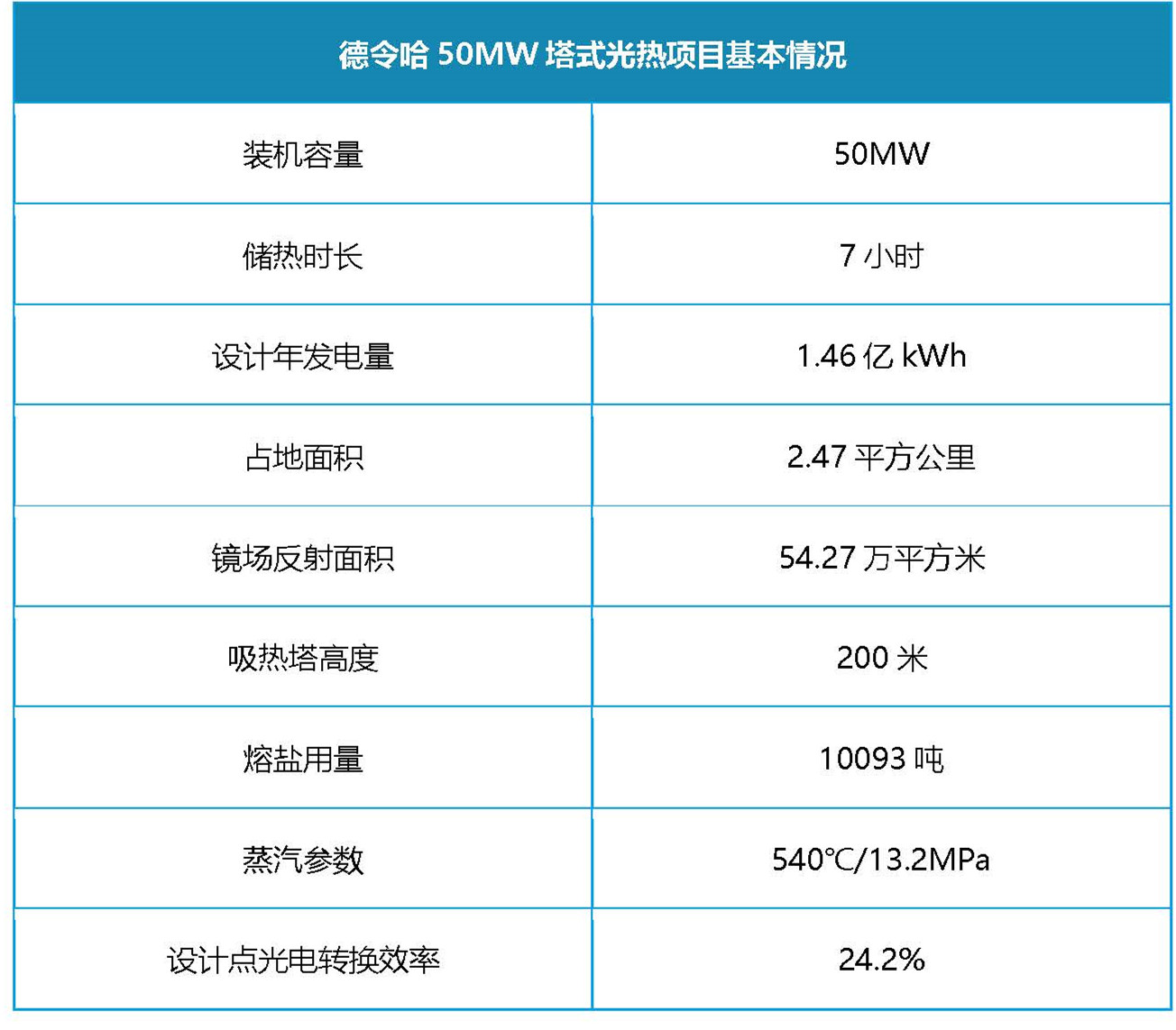 表:青海中控太阳能50MW光热电站主要指标情况