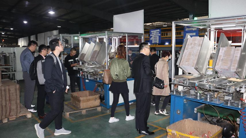 △参观自主研发的自动订盒机