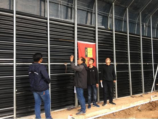 李勇军向记者介绍,杨凌模久温室科技有限公司通过多年的模块化温室建造实践和对邹志荣教授的温室理论研究,发现水模块化蓄热日光温室可利用水的柔性实现快捷建造,利用水的大比热容物理性能来实现非高温的“低质太阳能”的昼夜时空转移,对室内温度的影响具有冬暖夏凉、日夜削峰填谷的作用,墙体不需要土、砖块,不破坏耕地性价比高,成本相对较低;水模块化主动蓄热日光温室全部采用钢骨架加水模块主动蓄热系统合成,温室墙体全部为工业模块化水墙安装,工程建设快;特制的蓄热系统能提高水模块化墙体的被动蓄热能力,加上全自动主动蓄热风道,该主被动双蓄热系统能将白天棚内顶部富余热空气热量导入水模块和地下,蓄热增强;另外通风除湿性能高,通过地埋管道风机变高温高湿空气为凝露渗入植物根部,在室内形成流动空气,通风除湿性能也得以提高。“刚刚过去的冬至日我们经过物联网测试棚内温度效果良好,和专业比照日光温室最低温度高出3.4度,湿度低5%,比传统土堆日光温室性能更好,目前棚内的黄瓜苗正在茁壮成长,获得当地用户很高的评价”李勇军说。