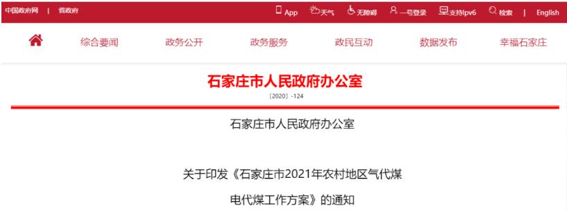 《方案》指出,2020年12月28日,石家庄市人民政府办公室发布关于印发《石家庄市2021年农村地区气代煤电代煤工作方案》的通知,《通知》称2021年市级政府不再统一组织双代改造工作,2021年对已使用3年以上已出质保期的功率大、效果差的电暖器、电锅炉、石墨烯等采暖设备,采用热泵技术、光热+等节能电代煤设备进行置换,确保电代煤采暖效果,确保满足农户采暖需求。电代煤采暖设备必须采用热泵技术、光热+等节能电代煤设备,确保电代煤采暖效果。