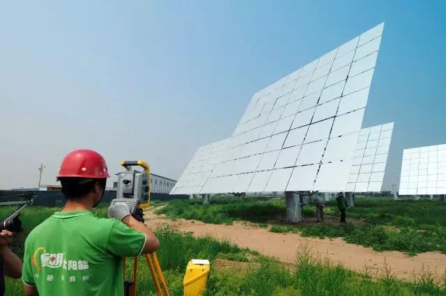 北京延庆太阳能高温热发电站镜场,由中科院、皇明太阳能股份有限公司和华电集团等单位联合完成,是中国首座自主知识产权光热发电站,属于国家863计划,2006年立项,2008年获发改委批准、允许并网发电,发电容量为1兆瓦,属于示范项目。电站建成后,每年的发电量将达270万度,相当于1100余吨标准煤产生的电量,可减排二氧化碳2300余吨、二氧化硫21吨、氮氧化合物35吨。