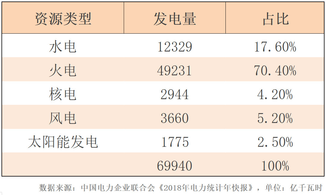 目前,我国风电、光伏在电力结构中仍只占据较小的比重。2018年,全国风电、光伏发电量分别为3660亿千瓦时、1775亿千瓦时,占据全部发电量的5.2%、2.5%。