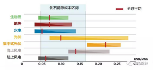 国际可再生能源署(IRENA)预计,随着技术进步,2019年全球成本最低的风电和光伏项目的度电成本将达到甚至低于3美分/千瓦时,成为最经济的绿色电力。