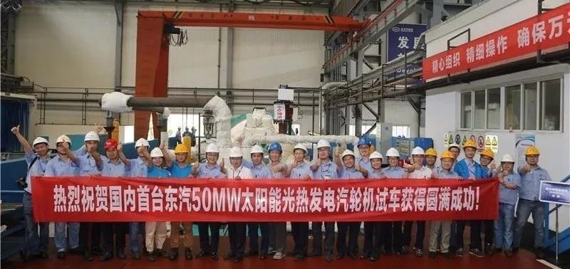 2017年,东汽自主研发的中广核德令哈5万千瓦机组在工业透平事业部完成厂内空负荷试车,这标志着国内首台大功率光热汽轮机组研制成功,机组交付后将成为国内首台投运的大功率太阳能光热发电汽轮机。