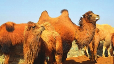 家驼群中的双峰驼