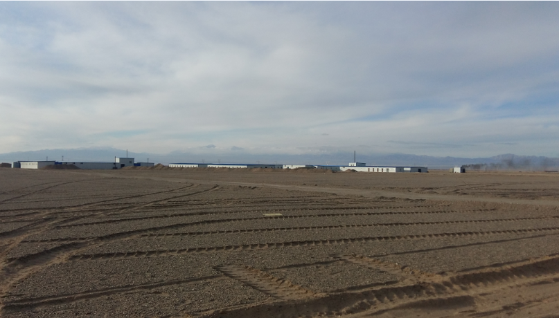 砂地上盖起一排排彩板房