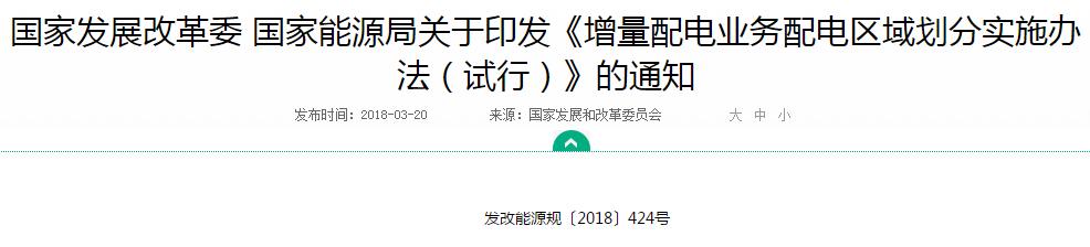3月20日,国家发展改革委、国家能源局关于印发《增量配电业务配电区域划分实施办法(试行)》的通知。