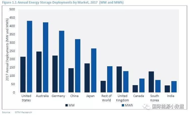 2017年全球新增储能容量1.4吉瓦,澳大利亚、美国领跑