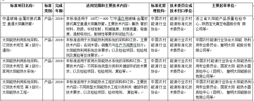 2018年能源领域行业标准制(修)订计划还包括多项太阳热利用标准: