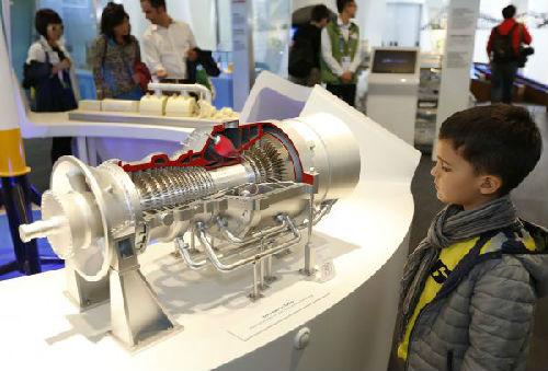 图:2015年5月2日,在意大利米兰世博会中国企业联合馆,一名小朋友在上海电气集团电机模型前驻足。(新华社)