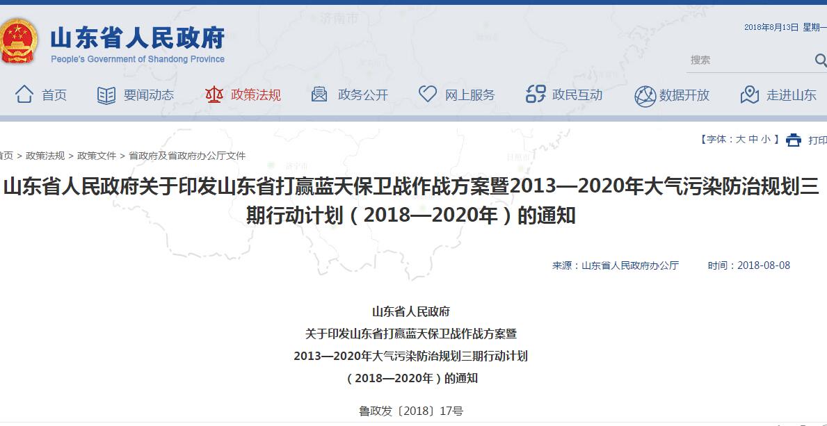 山东省打赢蓝天保卫战作战方案暨2013—2020年大气污染防治规划三期行动计划(2018—2020年)