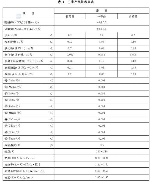 《标准》把太阳能熔盐(硝基型)分两个类别: