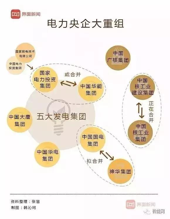 先前,从2015年中电投与国核技合并开始,能源央企的合并潮愈演愈烈。2017年8月28日,国电集团与神华集团合并,定名为国家能源投资集团有限责任公司。