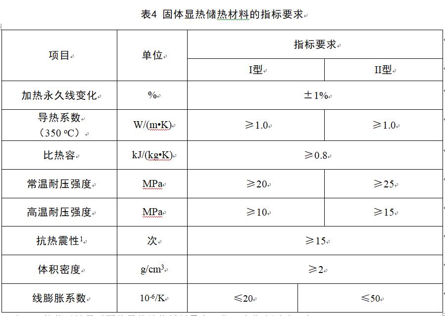 注:抗热震性是以固体显热储热材料最高工作温度作为测试温度