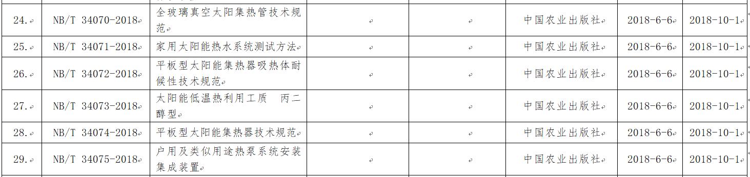 近日,国家能源局发布2018年第8号公告。据公告,国家能源局发布了87项行业标准,其中能源标准(NB)47项、电力标准(DL)40项。涉及太阳能热利用的行业标准有: