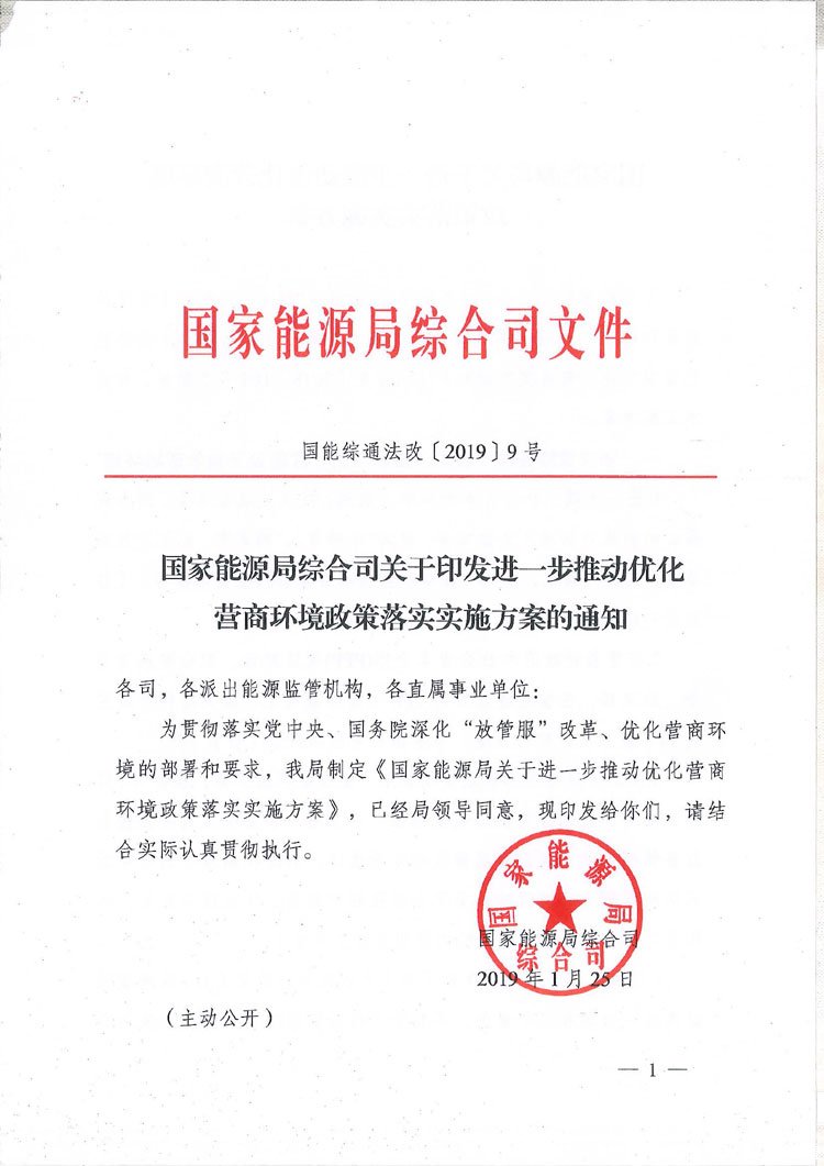 附件:家能源局综合司关于印发进一步推动优化营商环境政策落实实施方案