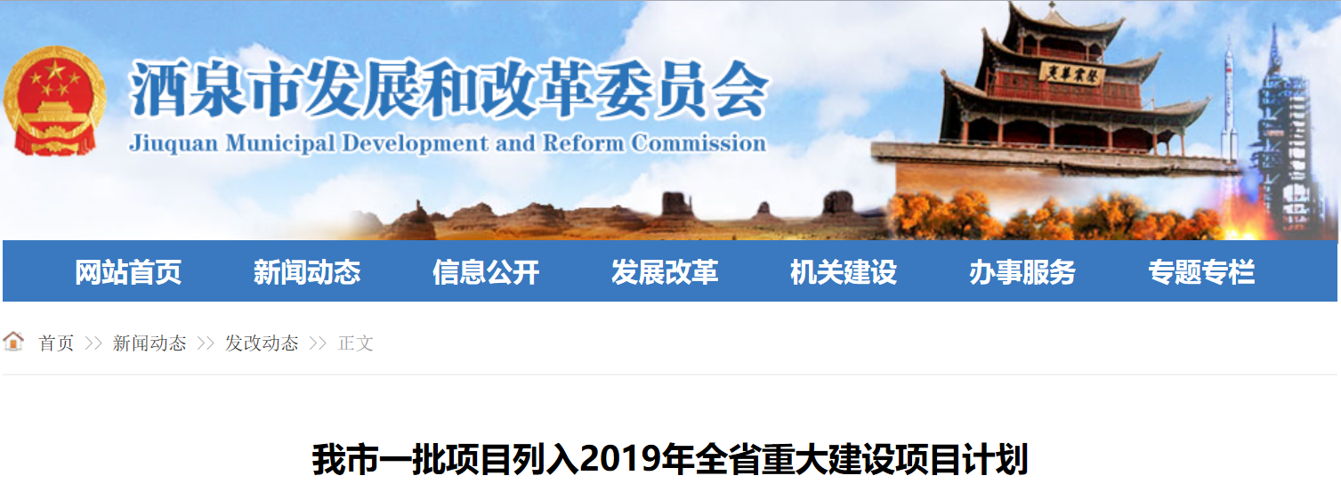 据酒泉市发展和改革委方面消息:近日,入选国家首批光热发电示范项目、位于该市的兰州大成敦煌50兆瓦熔盐线性菲涅尔式光热发电项目、玉门鑫能光热第一电力有限公司50兆瓦熔盐塔式光热发电项目和玉门龙腾新能光热开发有限公司玉门东镇导热油槽式50兆瓦光热发电示范项目以及计划新开工的凯盛大明太阳能光热和光伏发电用聚光材料及深加工项目被列入2019年甘肃省重大建设项目计划。