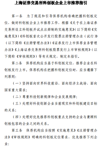 3月3日,上海证券交易所发布了《上海证券交易所科创板企业上市推荐指引》,明确重点推荐下列领域的科技创新企业: