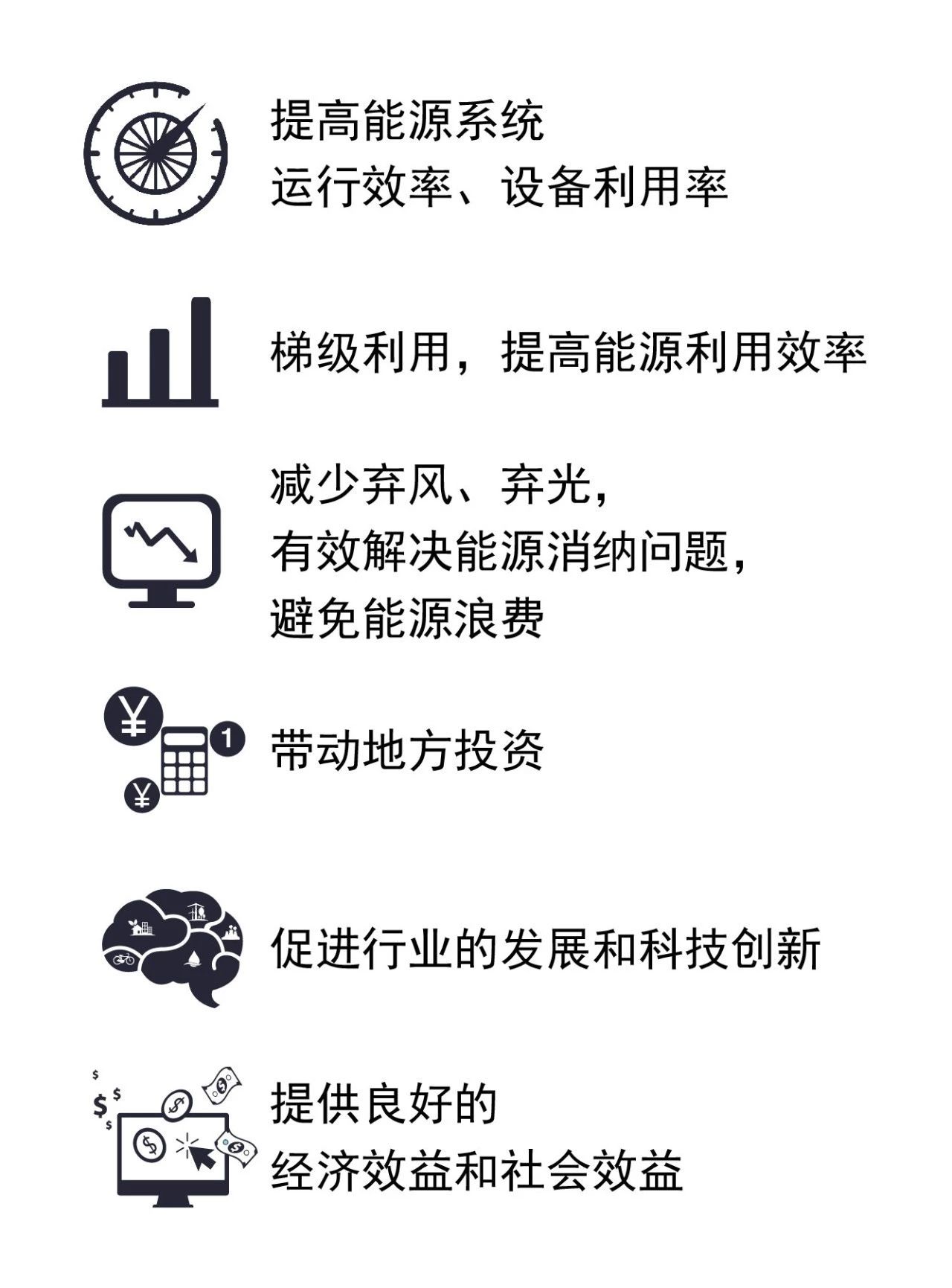 2、多种能源之间相互补充和梯级利用,达到1+1>2的效果,从而提升能源系统的综合利用效率,缓解能源供需矛盾。