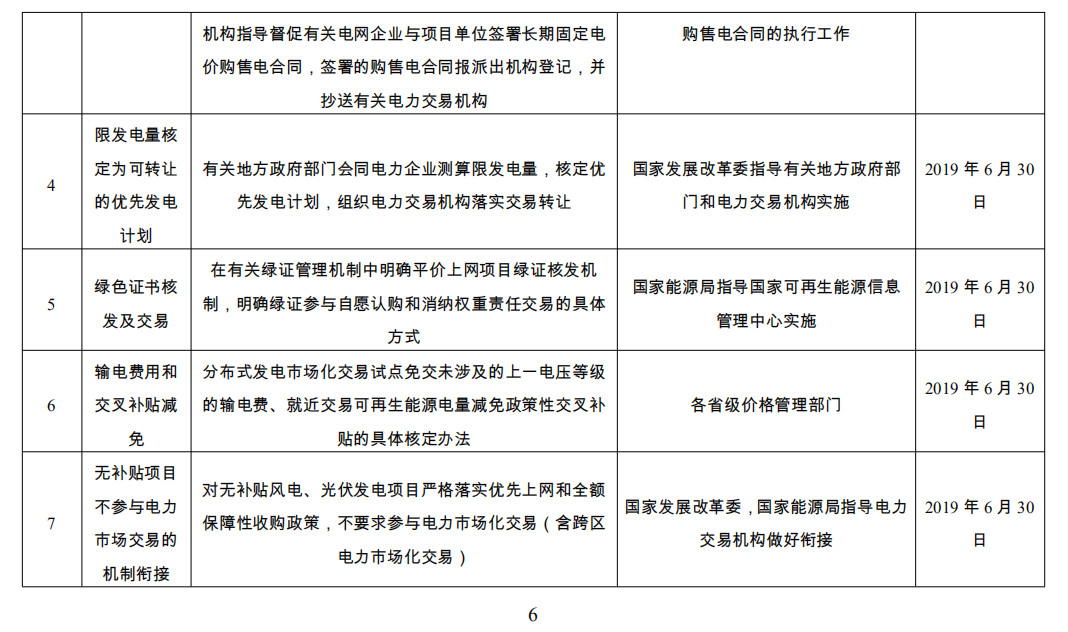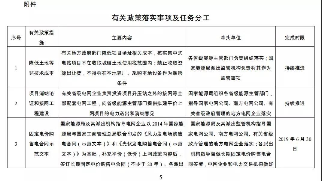 六、协同落实支持风电、光伏发电平价上网政策措施。各省(区、市)发展改革委(能源局)要抓紧组织风电、光伏发电平价上网项目建设工作,会同地方各级政府部门落实降低项土地相关成本有关政策要求。国家电网公司、南方电网公司及有关省级政府管理的地方电网企业做好有关平价上网项目的电力送出和消纳落实工作,规范签订长期固定电价购售电合同(不少于20年)。国家发展改革委、国家能源局将加强对有关平价上网项目政策落实的指导和督促。有关政策落实事项及任务分工见附件。
