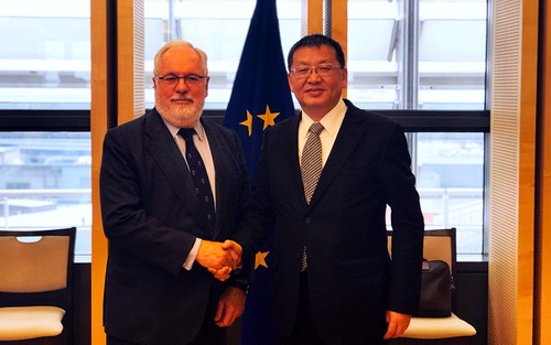 4月9日,为配合第二十一次中欧领导人会晤,第八次中欧能源对话在比利时布鲁塞尔召开。国家能源局局长章建华与欧盟气候行动和能源委员卡内特共同主持对话并发言。对话在坦诚、友好、务实的气氛中进行。