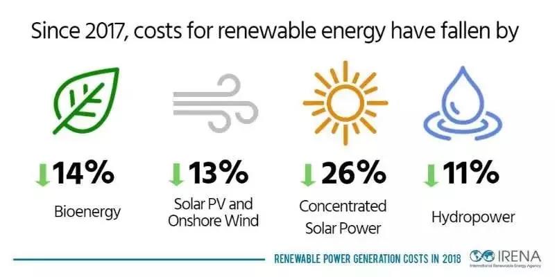 报告显示,水电、陆上风电成本最低,降幅明显;海上风电成本偏高,而且降幅不大;光伏成本继续明显下降;而光热发电成本最高,超过光伏的一倍,但是降幅高达26%,作为可调度的可再生能源发电前景可期。