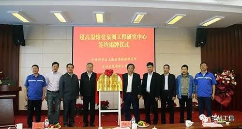 6月26日下午,兰州国器装备制造集团下属的兰州兰泵有限公司(简称兰州兰泵)与中国科学院上海应用物理研究所,举行超高温熔盐泵阀工程研究中心签约揭牌仪式。中国科学院先进核能创新研究院徐洪杰院长、上海应用物理研究所副所长(法人代表)戴志敏、甘肃省工信厅副厅长王海峰、兰州新区管委会副主任张爱胜、兰州市国资委主任郑志强等领导以及上海应物所、核创院、甘肃省工信厅、甘肃省发改委、兰州市国资委有关部门负责人和兰州国器装备集团中层以上干部共计80余人参加了签约揭牌仪式。