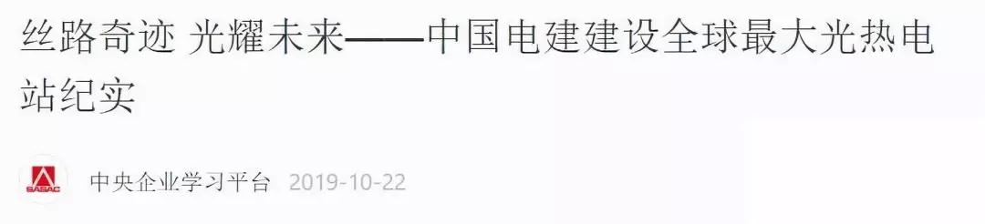中宣部“学习强国”:丝路奇迹 光耀未来——中国电建建设全球最大光热电站纪实