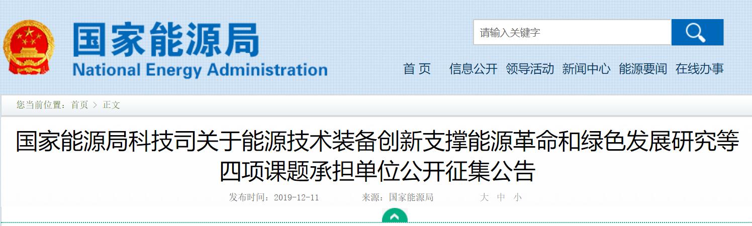 本次课题征集由国家能源局科技司具体负责。