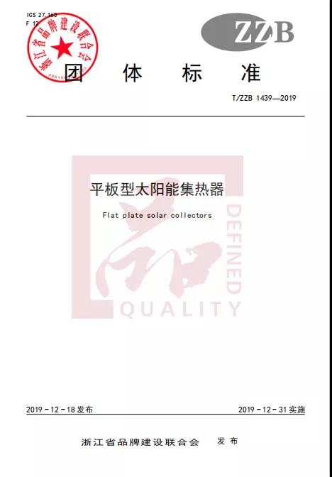 近日,浙江省品牌建设联合会发布通知,《平板型太阳能集热器》标准经批准成为“浙江制造”标准,编号为T/ZZB 1439—2019,将于2019年12月31日起正式实施,这是海宁市首个太阳能热利用行业浙江制造标准,也是浙江省首个太阳能热利用核心部件浙江制造标准。