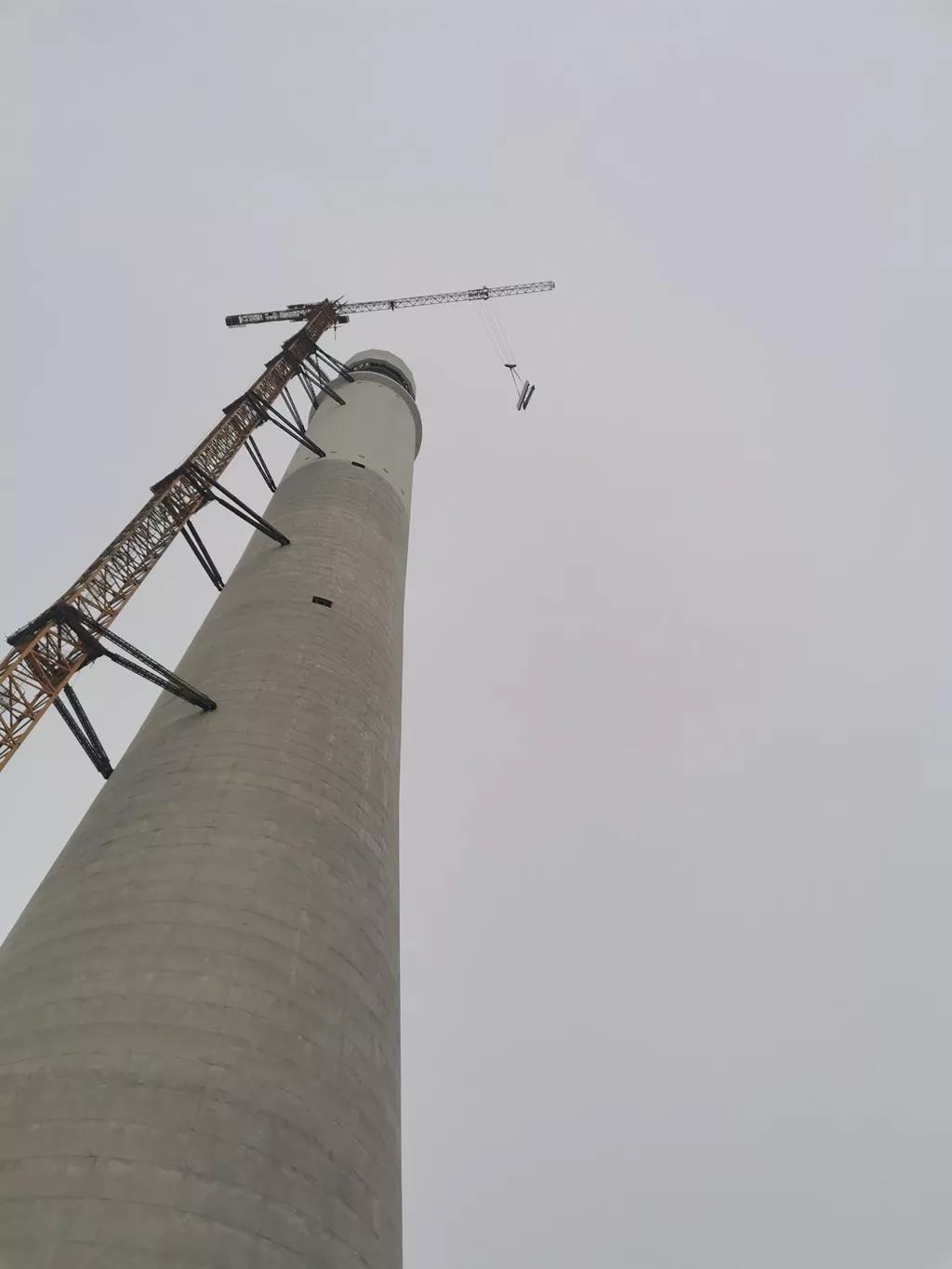 据了解:年底的哈密淖毛湖地区温度低、风力大,新疆庞源现场负责人和安拆队伍顶风冒雪,在零下十几度的严寒天气条件下将塔吊安装至独立高度。2019年1月6日在新年假期尚未结束之时,新疆庞源本着想工地之所想,急工地之所急,安排专人和安拆队伍到达现场,再次顶升附着,将塔吊架设到210m高(附着五道),在项目复工前将塔吊交付天津电建光热项目。
