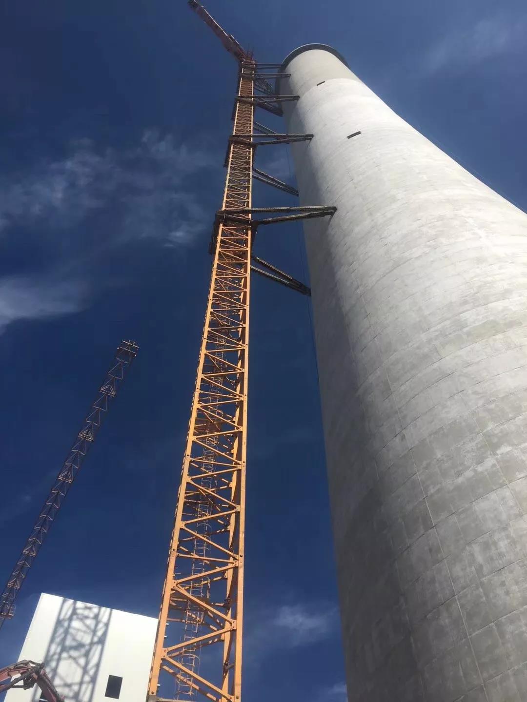 待施工单位将吸热塔顶钢结构安装完成后,新疆庞源再次安排原班队伍及现场安全监护人员抵达现场,将塔吊顶升至最大使用高度240m,共附着六道。