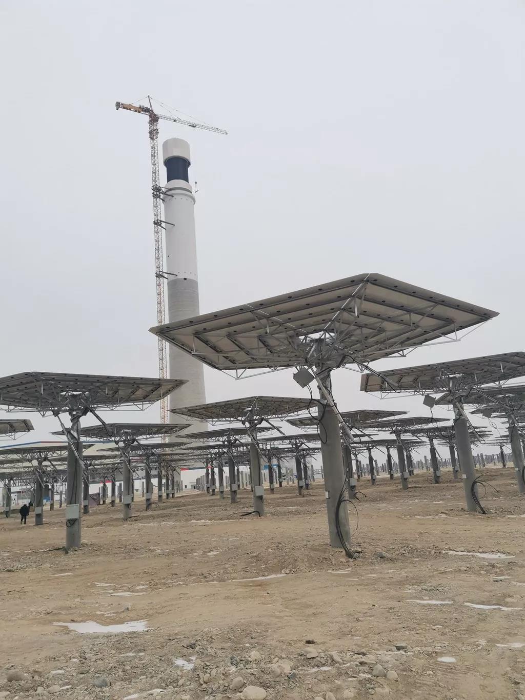 中电哈密熔盐塔式50MW光热发电项目由中国能源建设集团投资有限公司投资、运行管理,西北院以总承包模式建设,并自主独立提供全厂全过程工程设计。项目于2017年10月开工建设;2019年9月23日11时58分倒送电一次成功;9月24日,项目热盐泵顺利就位;10月16日,项目三台冷盐泵及两台调温泵已经顺利吊装就位;12月12日17时26分,项目储换热系统蒸汽吹管一次成功;12月18日,项目化盐标段顺利完工。12月24日,项目关键装备吸热器安装圆满完成;截止目前,吸热塔、集热场、熔盐罐等重点设施的基础建设已经完工,汽轮机发电机已经全部调试完毕,部分定日镜已安装调试完毕,16000多吨熔盐全面进入运行状态。